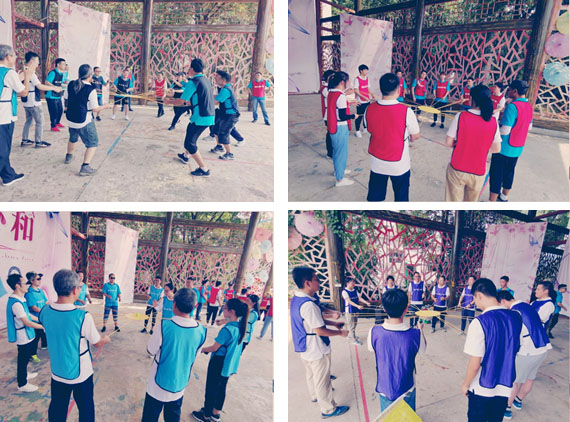 為了讓大家消除緊張、陌生感,相互之間的隔閡、尷尬,使大家快速熟悉周圍環(huán)境、快速進入活動狀態(tài)、融入整個團隊,我們采取后面成員給前面成員“按摩式”的破冰活動預熱開場。大家各自組成4個團隊,發(fā)散思維取隊名、隊歌、團隊pose……